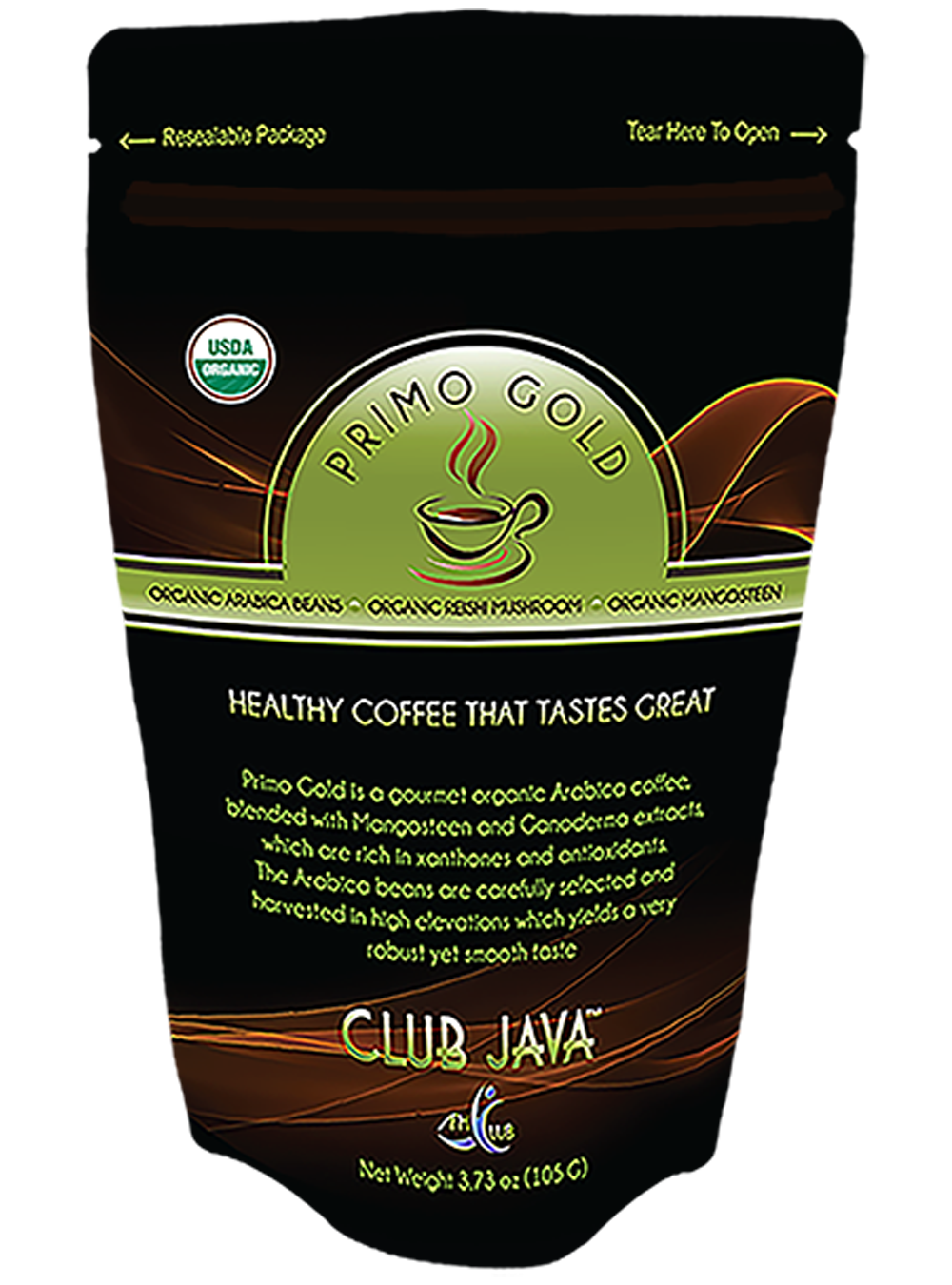 Primo Gold 100% Organic Coffee offers the "best of the best" organic Arabica beans with the dietary health benefits of the amazing Mangosteen fruit and Reishi mushrooms (Ganoderma). The Arabica beans are grown at high elevations producing some of the richest, smoothest tasting coffee in the world, with no bitter after-taste. Primo Gold is an instant USDA Certified organic coffee, so you can conveniently enjoy a fresh cup anytime, hot or cold. Simply put: the dietary health benefits found in every cup of Primo Gold are simply amazing!
